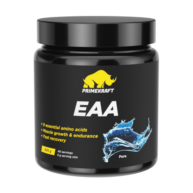 EAA (L-лейцин, L-лизин гидрохлорид, L-фенилаланин, L-валин, L-треонин, L-изолейцин, L-метионин, L-гистидин гидрохлорид, L-триптофан, подсолнечный лецитин) 100%.