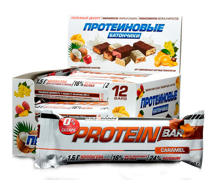 Многие уже оценили мягкий, не приторный вкус спортивных батончиков Iron Man, которые не содержат лишних жиров и калорий. Попробуйте и вы!