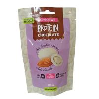 - Ингредиенты миндаль, шоколад белый (водорастворимые волокна кукурузы, какао масло, молоко сухое цельное, молоко сухое обезжиренное, эмульгатор (соевый лецитин), ароматизаторы натуральные, подсластитель (сукралоза)), концентрат сывороточного белка, глянцеватель.