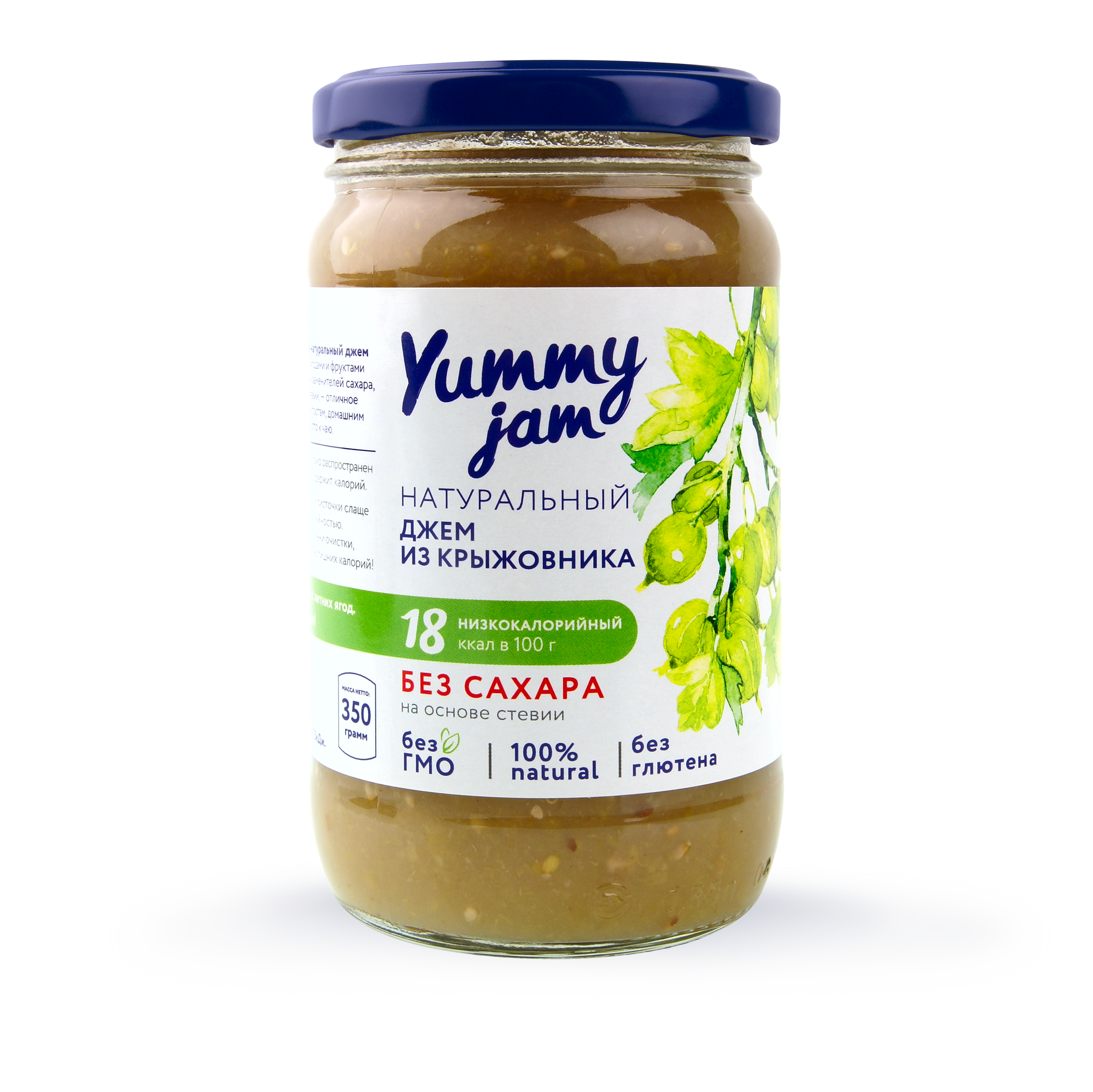 Полезный и вкусный джем Yummy Jam на основе стевии, в составе которого только натуральные ягоды или фрукты, обладает низкой калорийностью — 18 ккал на 100 г — и не содержит сахара, красителей, ароматизаторов.