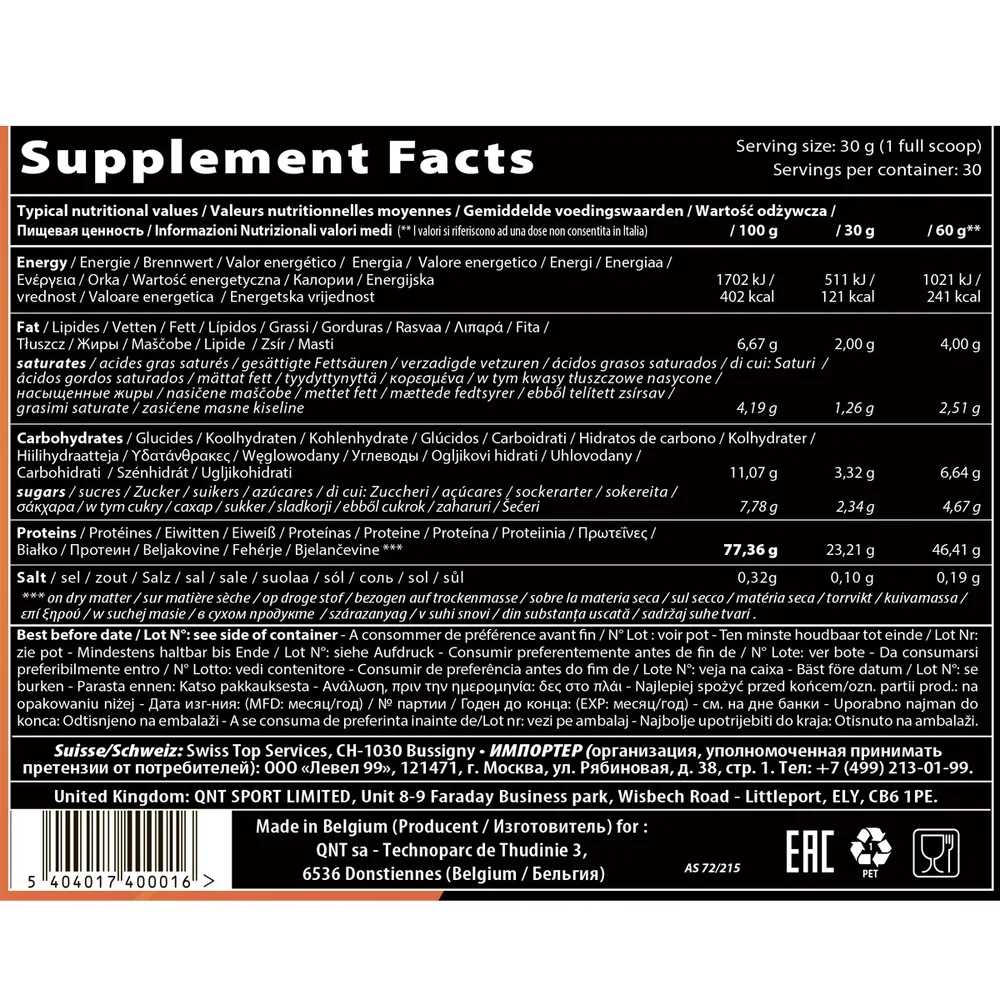 Европейская компания с главным офисом в Брюсселе. Компания была основана в 1988 году и с тех пор добилась статуса одного из лидеров в индустрии спортивного питания. Продукция Quality Nutrition Technology распространена в более чем 30 странах по всей Европе, Азии и Северной Америке. Принцип работы QNT – повсеместная работа исследователей вместе с атлетами. Это позволяет создавать не просто эффективные, действующие продукты, но и продукты с великолепным вкусом. В процессе производства компания использует ингредиенты высочайшего качества, а строгие европейские законы гигиены и требовательные стандарты пищевых продуктов обязывают QNT соответствовать высоким нормам ISO 9001, GMP, HACCP, EFSIS. Именно поэтому QNT выбирают не только любители спорта, фитнеса, но и профессионалы.