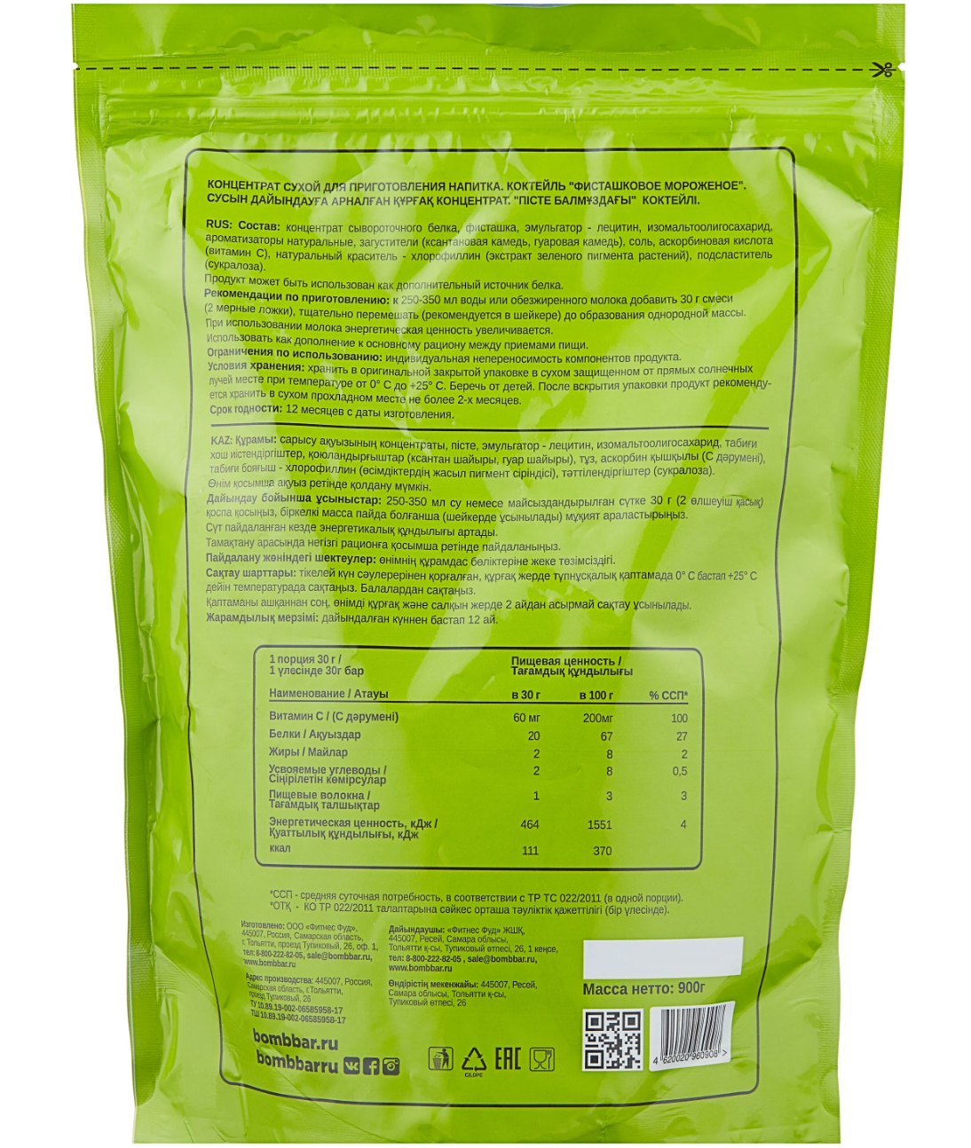 концентрат сывороточного белка, фисташка, эмульгатор (соевый лецитин), ароматизаторы натуральные, загустители (ксантановая камедь, гуаровая камедь), соль, антиокислитель (аскорбиновая кислота), натуральный краситель - медные комплексы хлорофиллов, подсластители (сукралоза).Отзывы