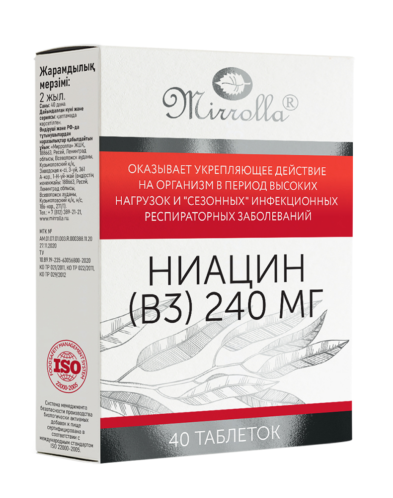 - Ингредиенты Никотиновая кислота/никотинамид, микрокристаллическая целлюлоза - носитель, крахмал кукурузный – стабилизатор; тальк – агент антислеживающий.