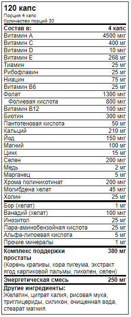 Принимаю витамины 5й день, честно от эффекта удивлён, пропала утомляемость, утром стаешь легко, заметил что начала голова работать и вообще самочувствие прекрасное.Начал меньше курить, думаю вообще бросить. Данные витамины всем советую. Принимаю по 2 капсулы в день. 1 утром, 2 рую вечером.